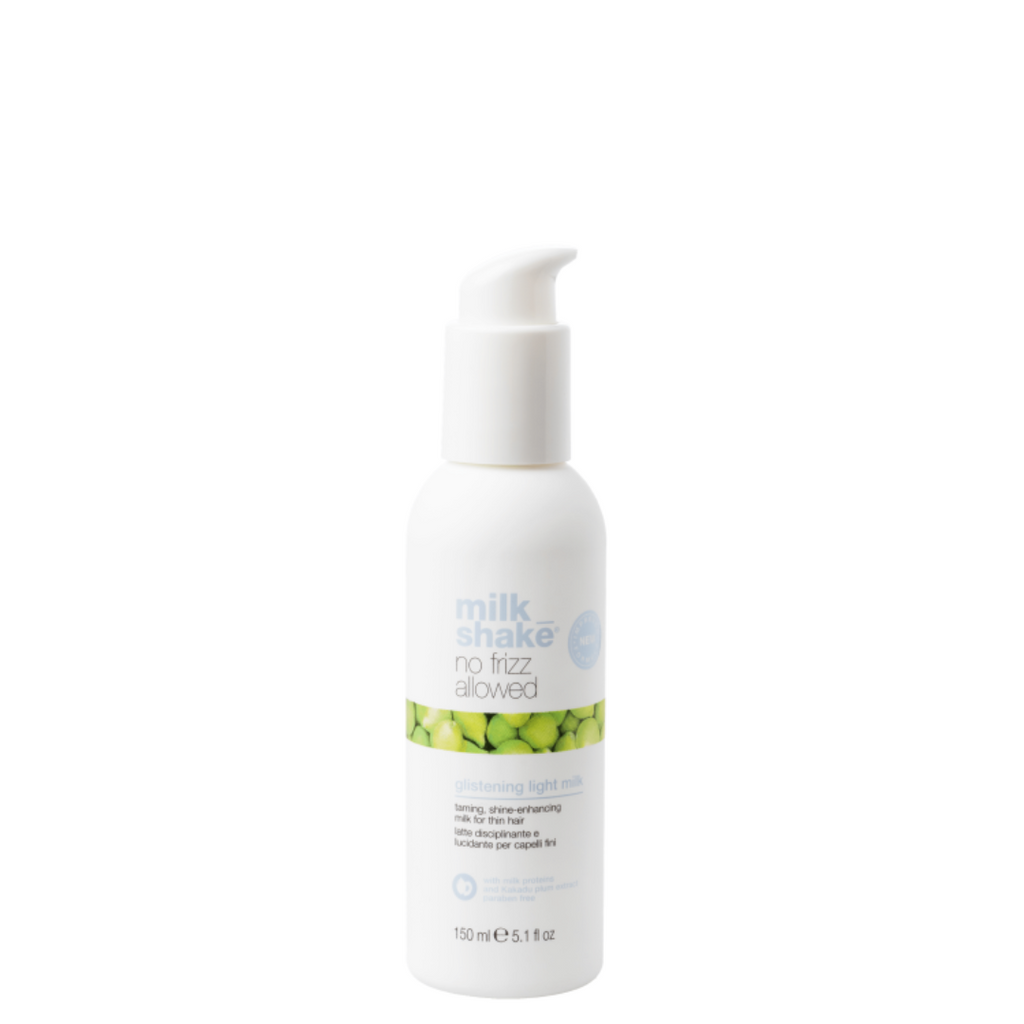 The MilkShake No Frizz Glistening Milk is a versatile leave-in treatment designed to tame frizz without the heaviness of a serum. Ideal for fine or thin hair, it restores hydration and seals the cuticle, leaving hair polished and easy to comb.