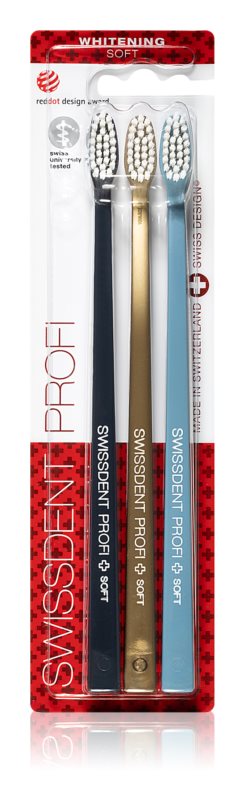 The Swissdent Whitening Trio is an essential set of soft toothbrushes designed to enhance your oral hygiene routine. This trio effectively removes plaque while being gentle on your gums and enamel. Enjoy a brighter, healthier smile with every brush.